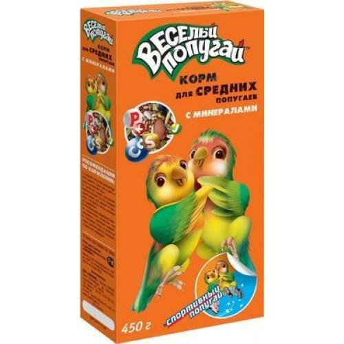 Корм "веселый попугай" с минералами для средних попугаев, 450 г