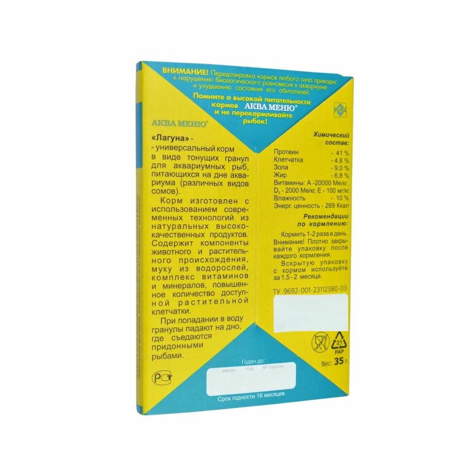 Корм аква меню "Лагуна" для рыб, 35 г, 2 шт.