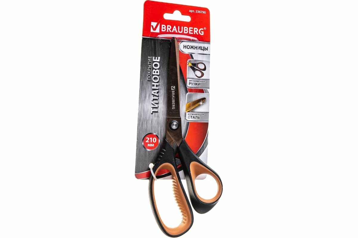 Ножницы BRAUBERG, 210 мм, суперпрочные, титановое покрытие, 2-х сторонняя заточка, блистер, 236790