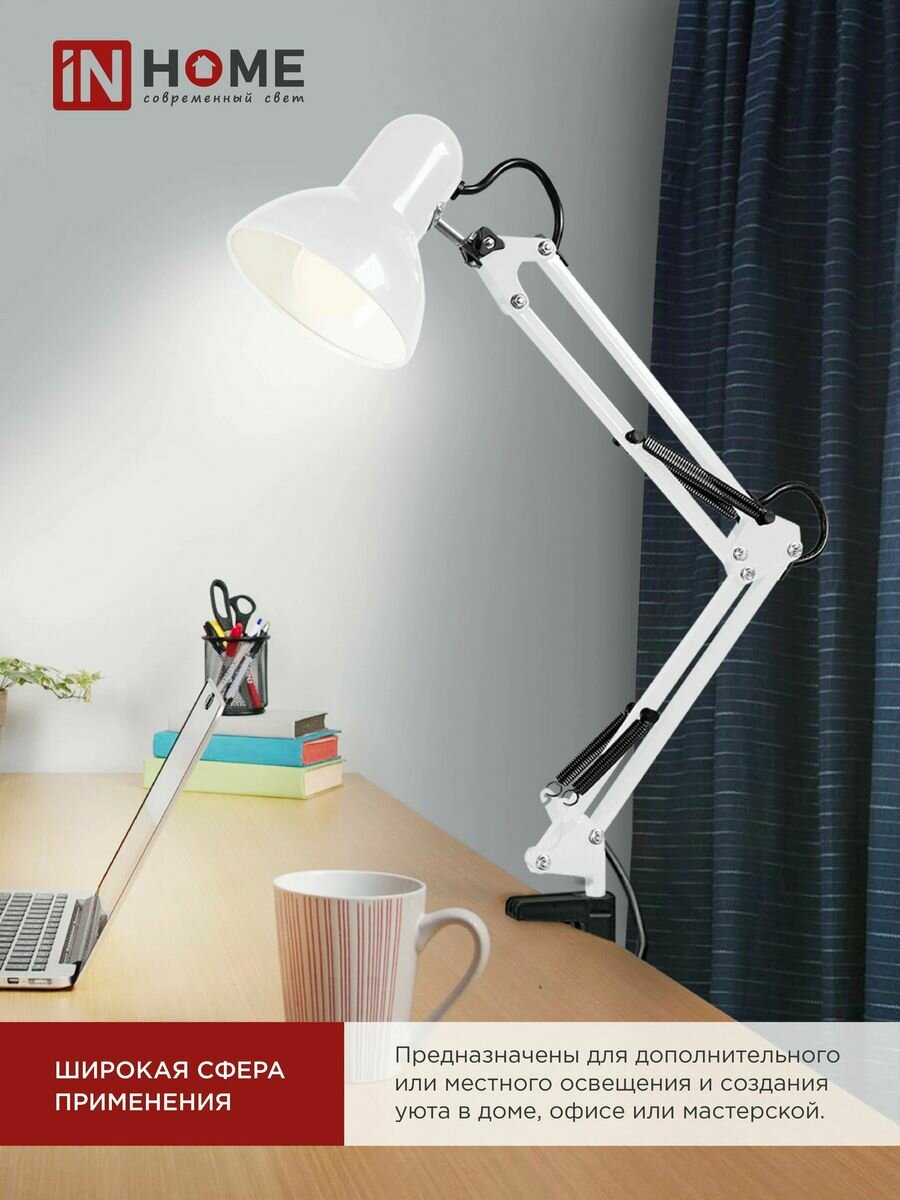 Настольная лампа для школьника на основании + Струбцина IN HOME СНО-15Б 60Вт E27 230В белый