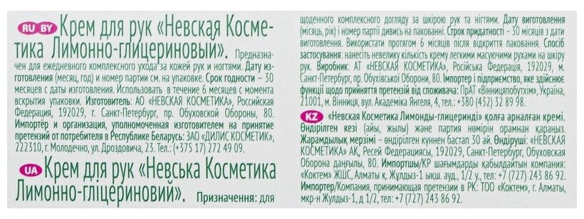 Крем для рук Невская косметика Крем для рук Лимонно-глицериновый