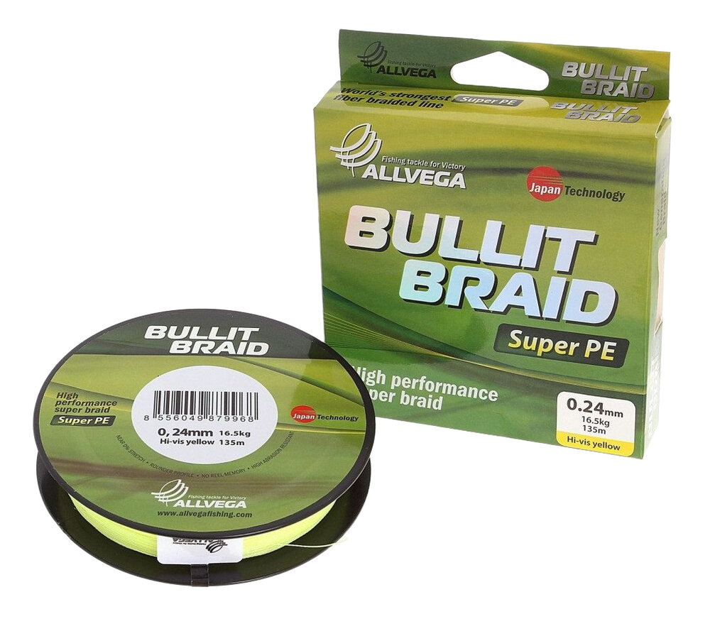 Купить Плетеный шнур Allvega Bullit Braid 135м 0,24мм 16,5кг, ярко-желтая