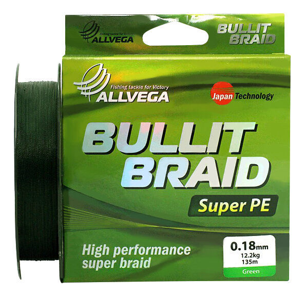 Купить Плетеный шнур Allvega Bullit Braid 135м 0,18мм 12,2кг, темно-зеленая