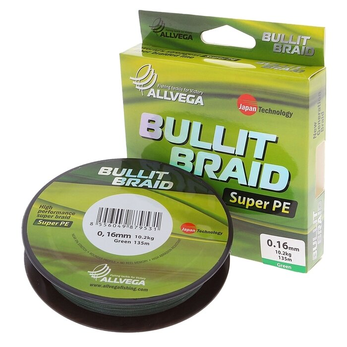 Купить Плетеный шнур Allvega Bullit Braid 135м 0,16мм 10,2кг, темно-зеленая