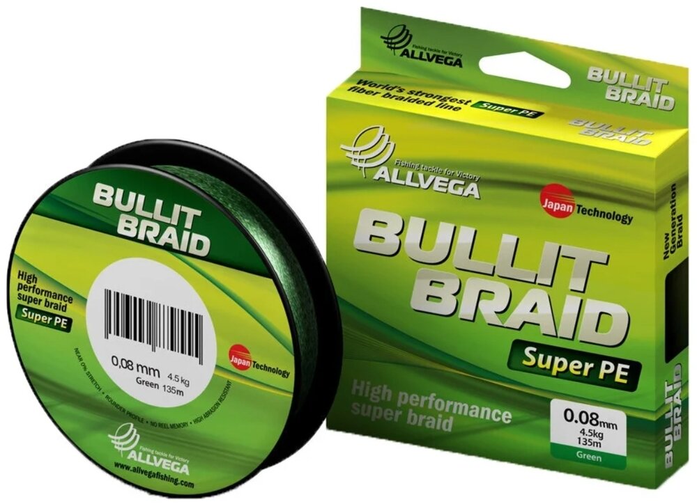 Плетеный шнур Allvega Bullit Braid 135м 0,30мм 23,4кг, темно-зеленая