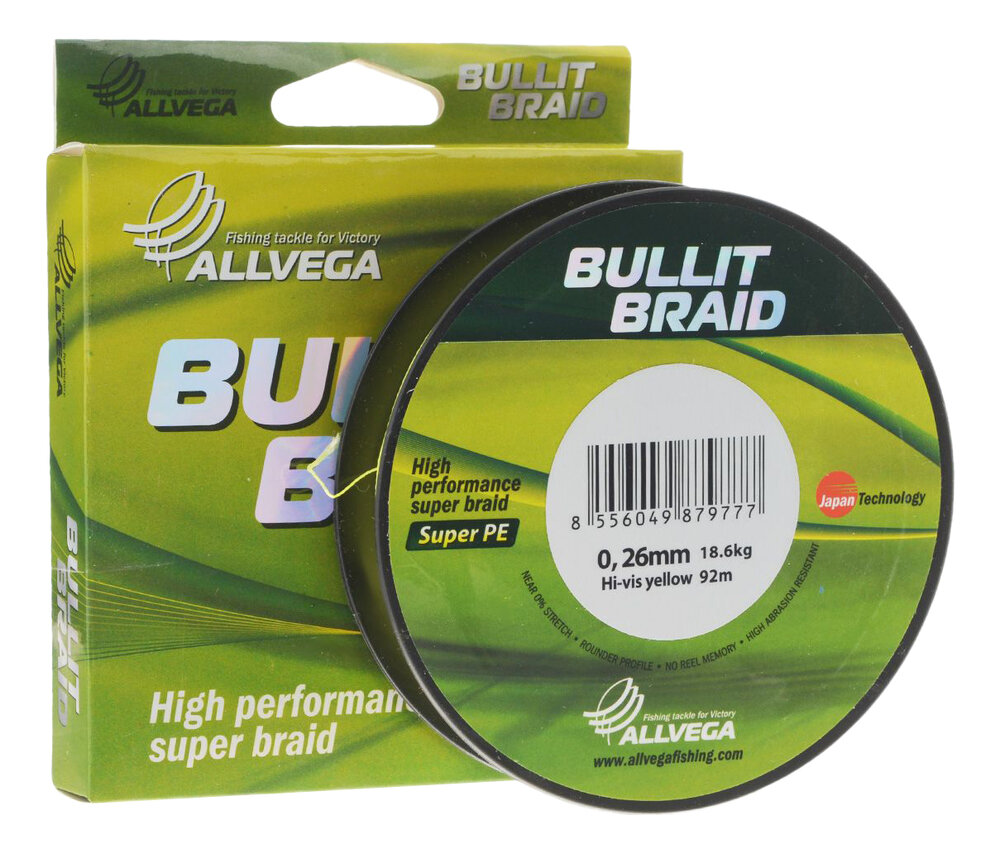 Плетеный шнур Allvega Bullit Braid 92м 0,26мм 18,6кг, ярко-желтая