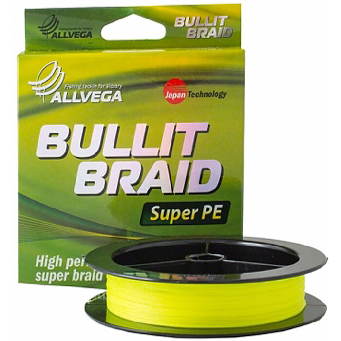 Плетеный шнур ALLVEGA Bullit Braid 92м 0,12мм 7,1кг (ярко-желтая)