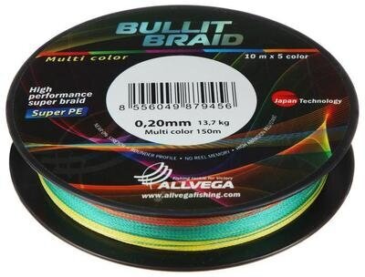 Купить Плетеный шнур Allvega Bullit Braid Multi Color 150м 0,20мм, 13,7кг