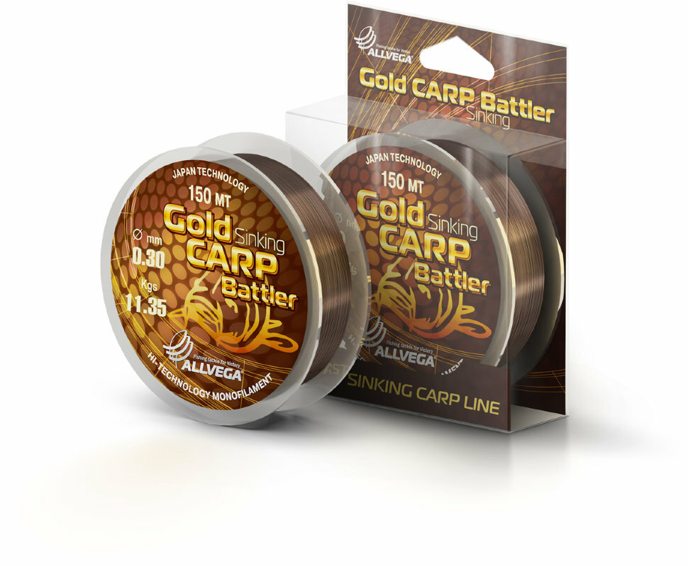 Леска монофильная ALLVEGA "Gold Carp Battler" 150м 0,30мм (11,35кг) коричневая, тонущая