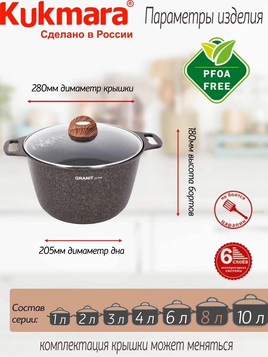 Кастрюля Kukmara Granit ultra, 8 л, стеклянная крышка, антипригарное покрытие