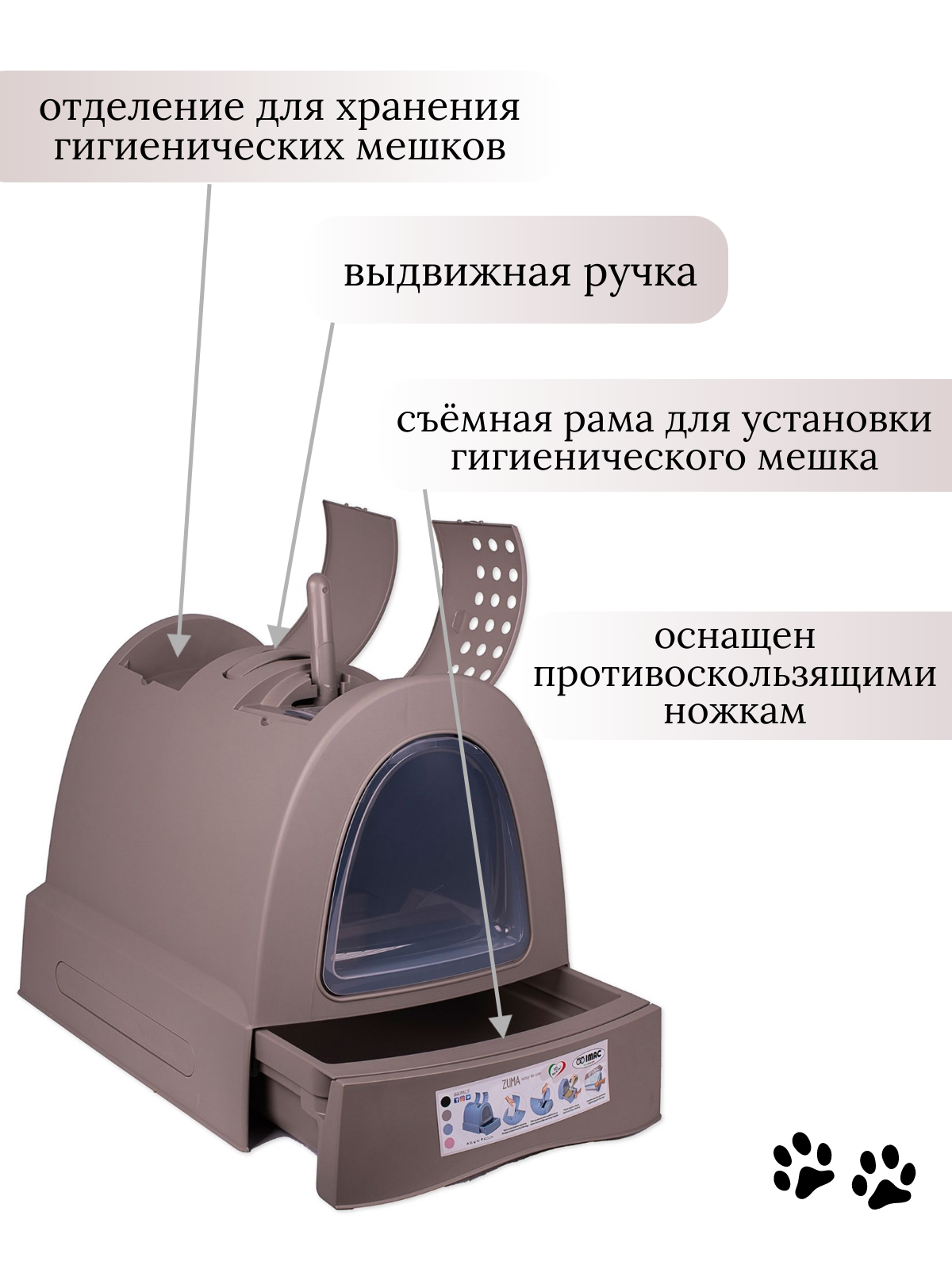 Био-туалет IMAC ZUMA для кошек, серо-бежевый 40х56х42,5h см
