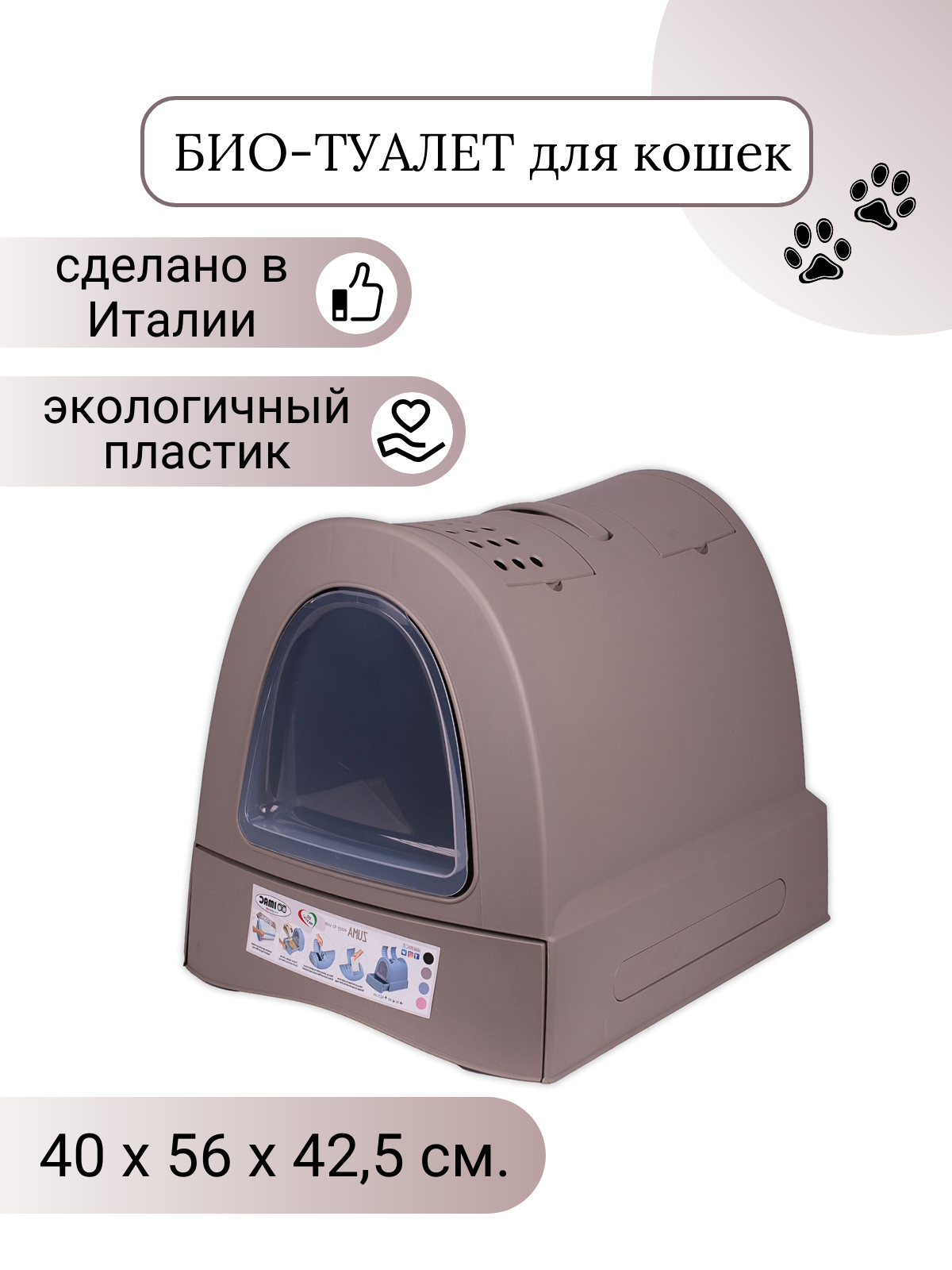 Био-туалет для кошек Imac ZUMA, серо-бежевый,40х56х42,5 см