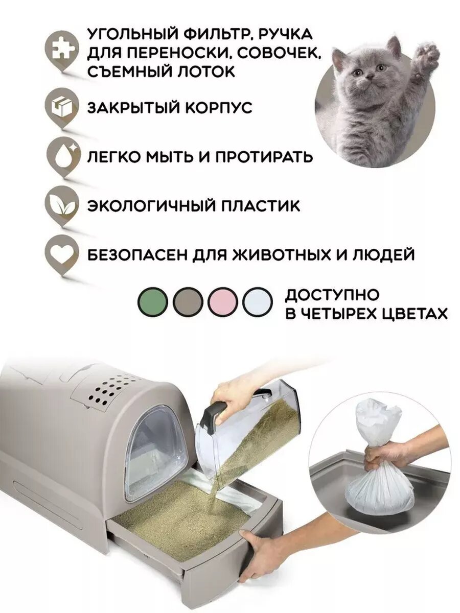 | Плюсы: | Удобный туалет, кот привык быстро |