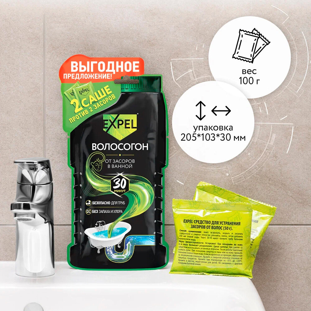 Средство для устранения засоров от волос Expel, 2 саше по 50 г 2909679