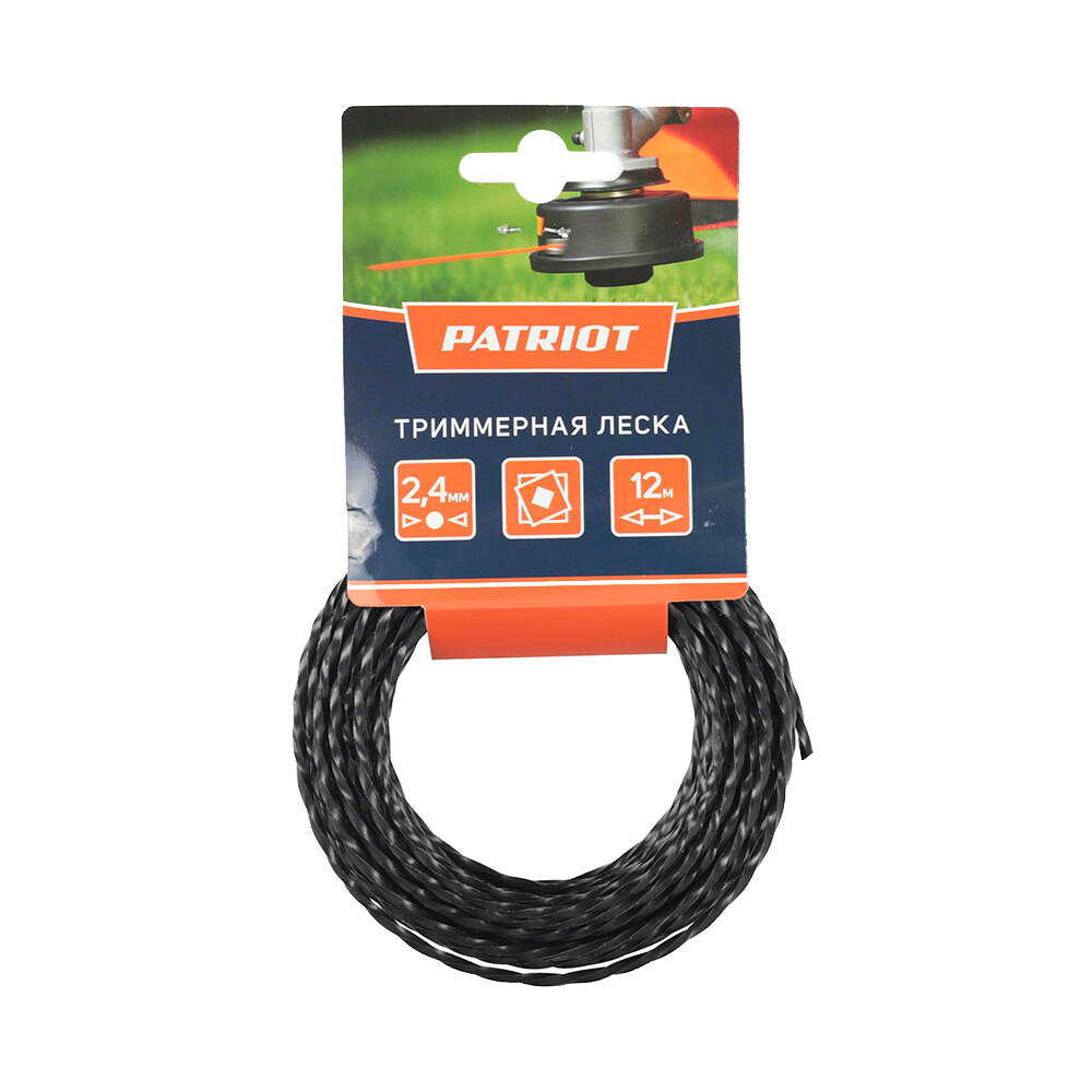 Леска для триммера Patriot витой квадрат 2,4 мм х 12 м черная (805205125)