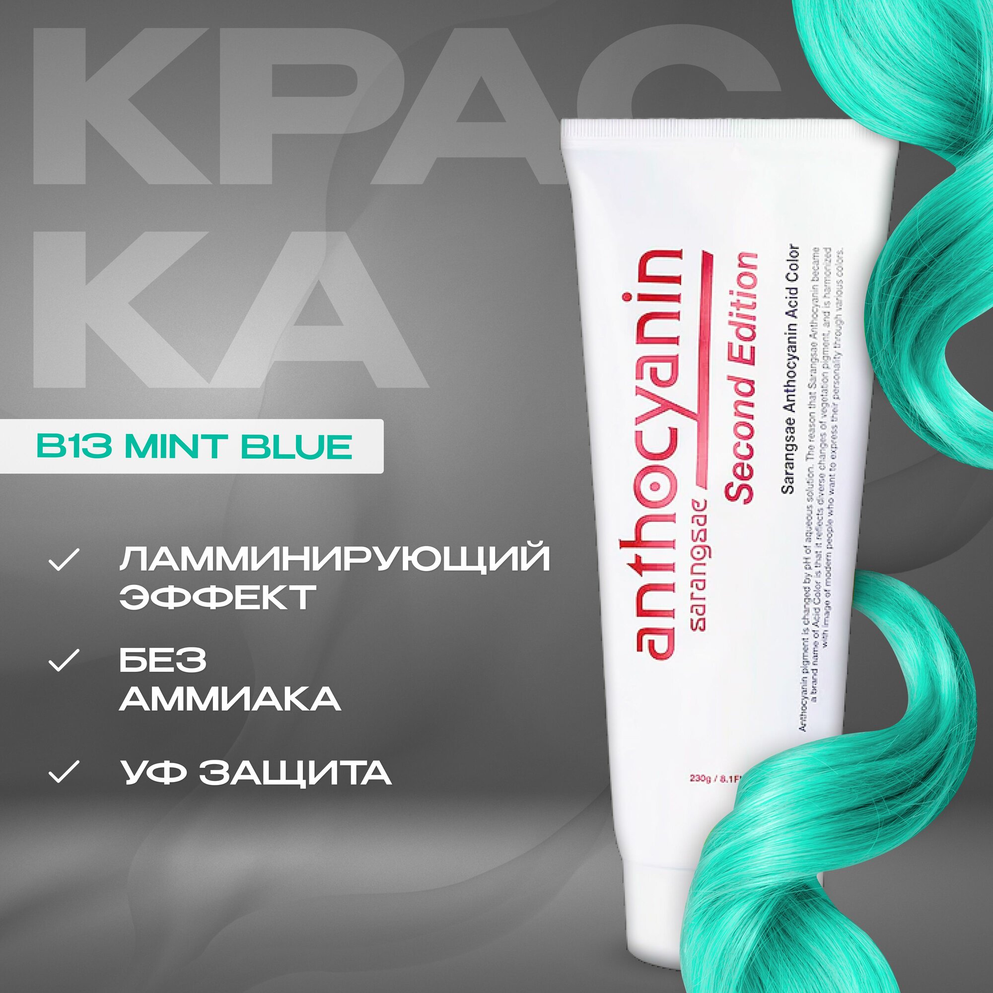 Купить Anthocyanin Голубая краска для волос Anthocyanin 230 мл B13 Mint Blue ламинирующая без аммиака профессиональная