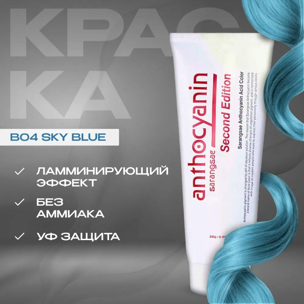 Anthocyanin Голубая краска для волос B04 - Sky Blue 230 мл профессиональная без аммиака ламинирующая