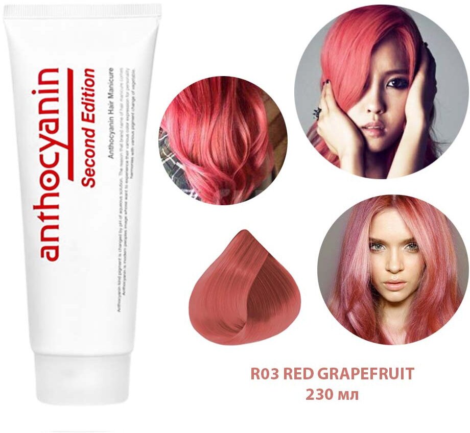 Anthocyanin Красная краска для волос R03 Red Grapefruit 230 мл профессиональная без аммиака ламинирующая