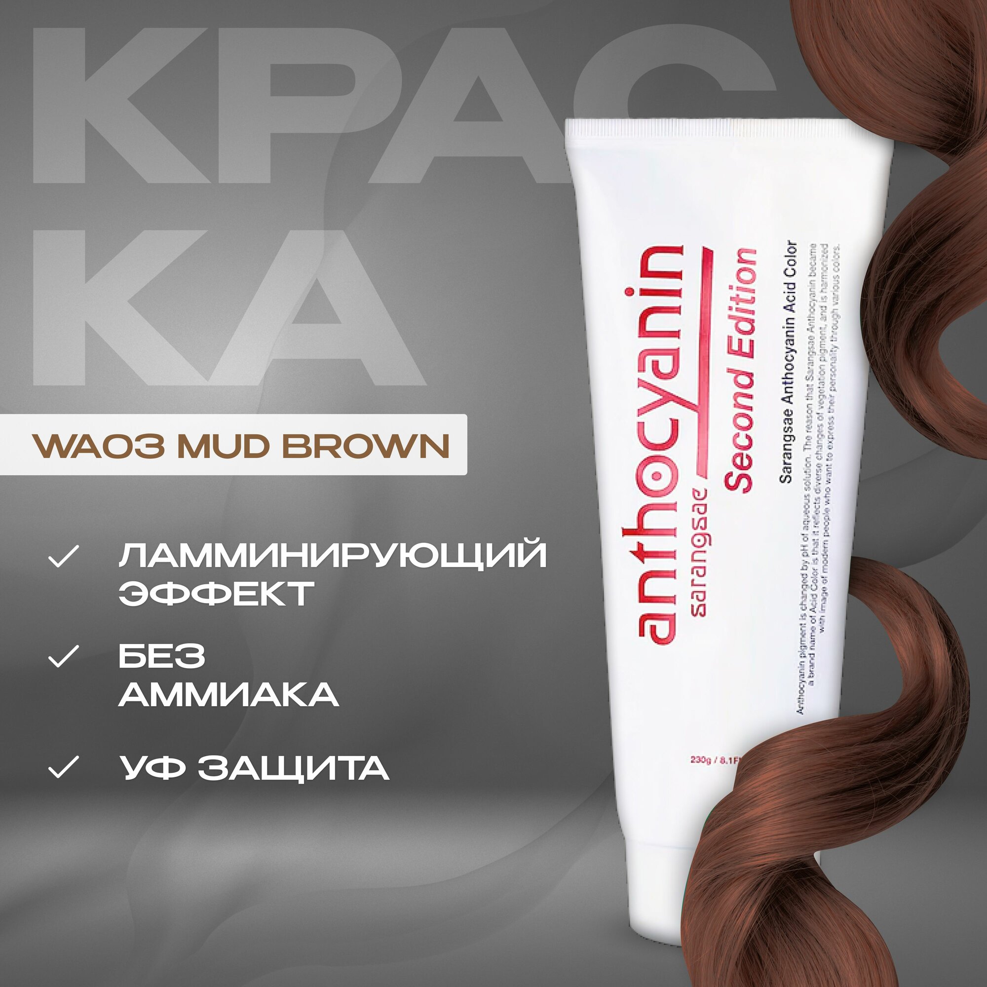 Anthocyanin Коричневая краска для волос WA03 Mud Brown 230 мл профессиональная без аммиака ламинирующая