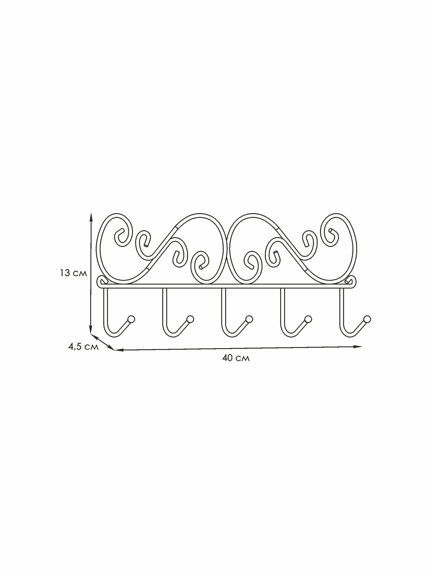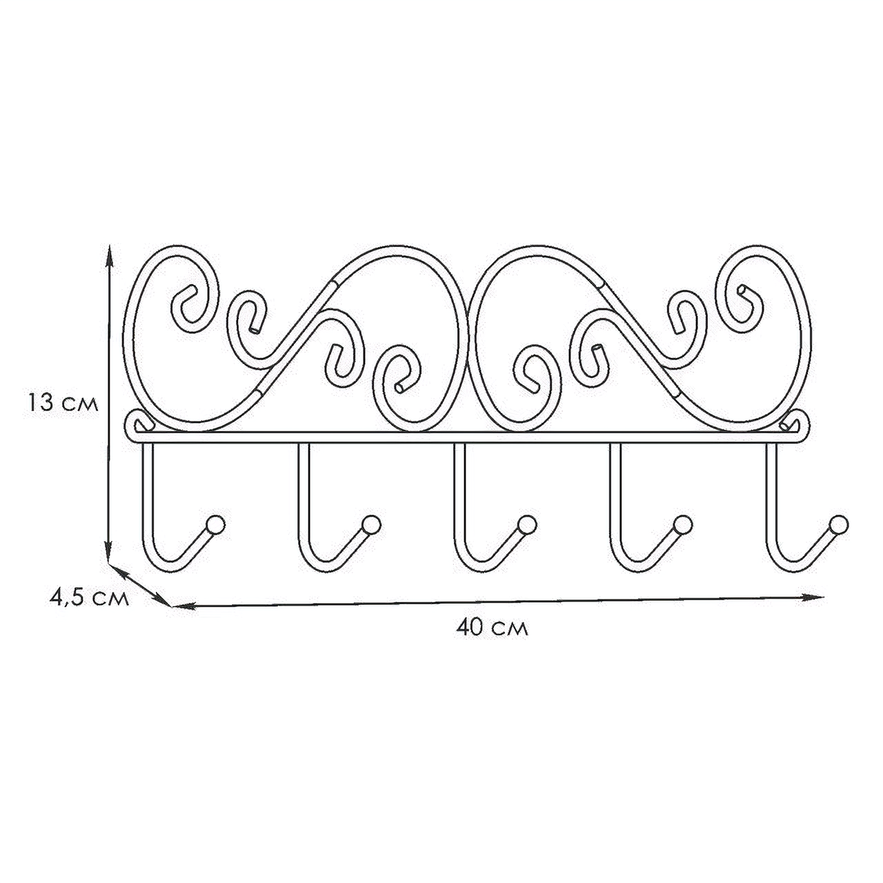 ЗМИ (Завод металлических изделий ООО) Вешалка настенная ЗМИ Кружева 5, 5 крючков, 40 x 4 x 13 см, черная