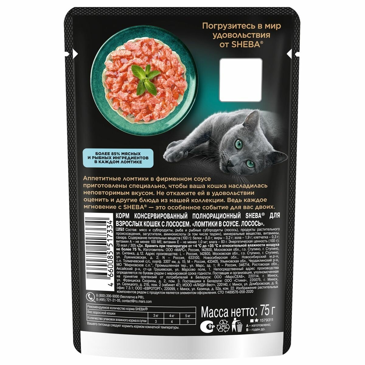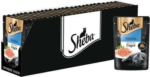 Sheba влажный корм для взрослых кошек всех пород, ломтики в соусе, лосось (24шт в уп) 85 гр