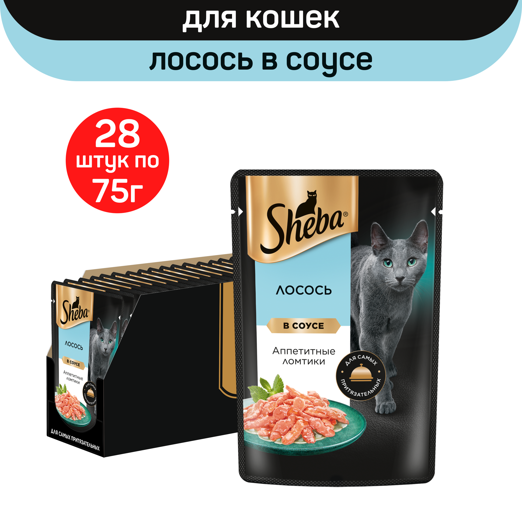 Sheba влажный корм для кошек ломтики с лососем, в соусе, в паучах - 75 г х 28 шт