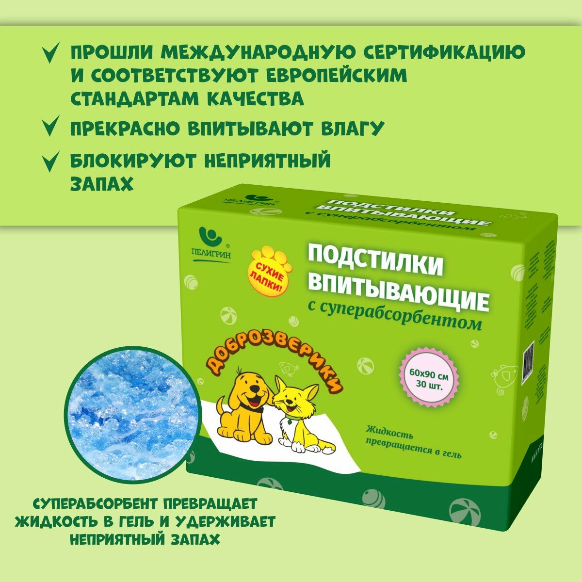 Пелигрин Доброзверики Подстилки впитывающие д/животных с суперабсорбентом 60*90*4шт