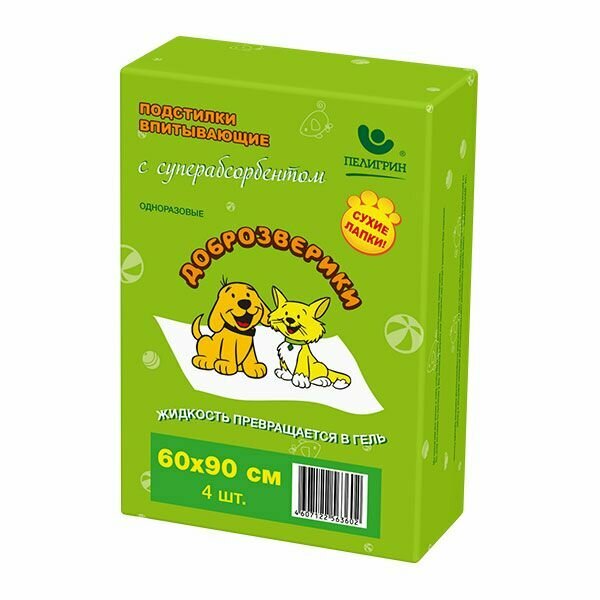 Пелигрин Доброзверики Подстилки впитывающие д/животных с суперабсорбентом 60*90*4шт