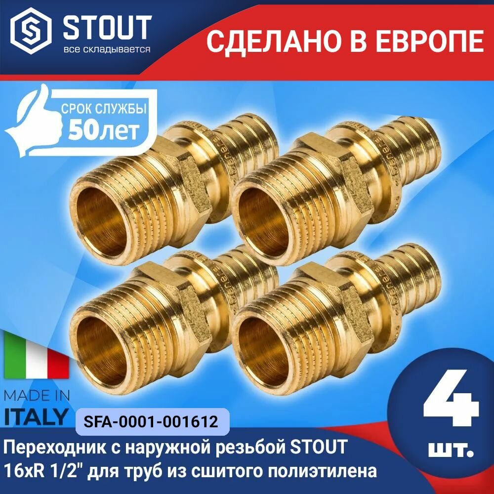 Купить Переходник с наружной резьбой STOUT (4шт.) 16xR 1/2" для труб из сшитого полиэтилена аксиальный (арт. SFA-0001-001612)