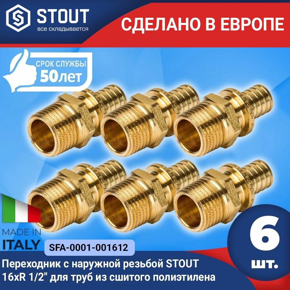 Купить Переходник с наружной резьбой STOUT (6шт.) 16xR 1/2" для труб из сшитого полиэтилена аксиальный (арт. SFA-0001-001612)