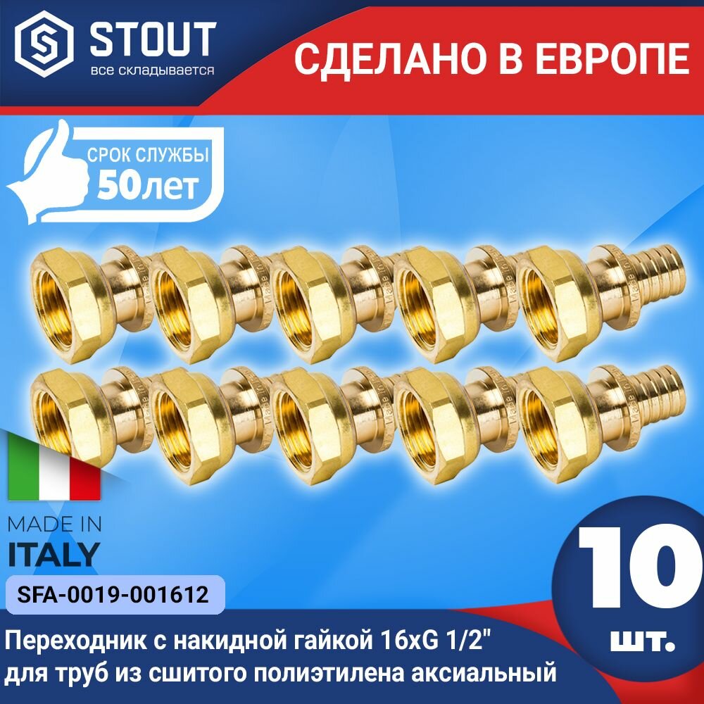 Купить Переходник с накидной гайкой STOUT (10шт.) 16xG 1/2" для труб из сшитого полиэтилена аксиальный (арт. SFA-0019-001612)