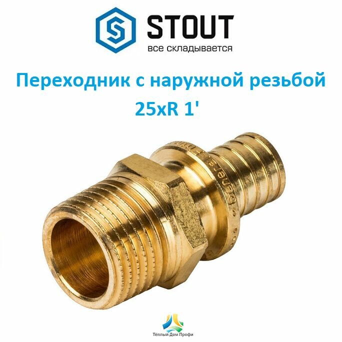 Переходник НР 25xR 3/4 для труб из сшитого полиэтилена аксиальный (SFA-0001-002534) | код RG008P0U5JA531 | STOUT ( 1шт. )