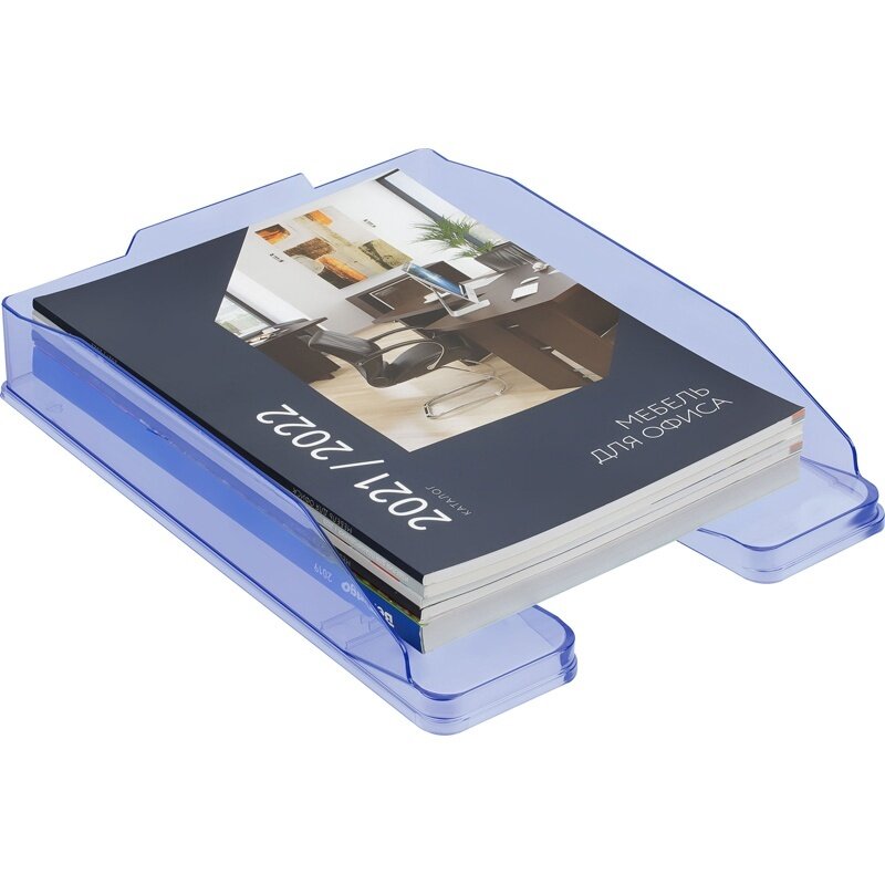Лоток для бумаг СТАММ "Эксперт", тонированный голубой