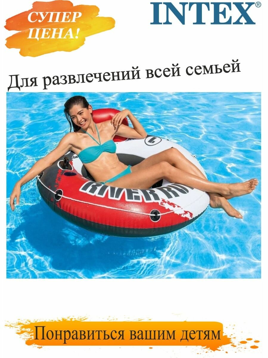 Купить Надувной круг кресло для плавания 135 см, River Run, водная ватрушка с ручками, до 100 кг, intex 56825