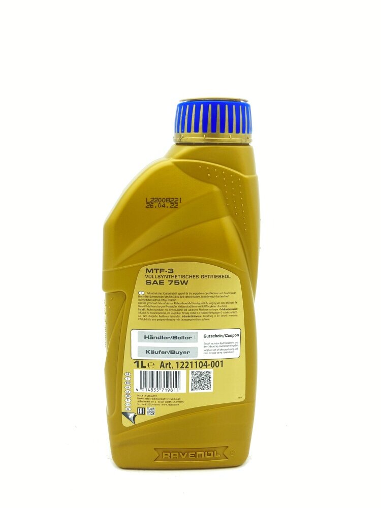 Ниже Вы можете прочитать отзывы на Ravenol MTF-3 SAE 75W 1л, ознакомится с подробными характеристиками, посмотреть интересные обзоры и фотографии на Ravenol MTF-3 SAE 75W 1л.