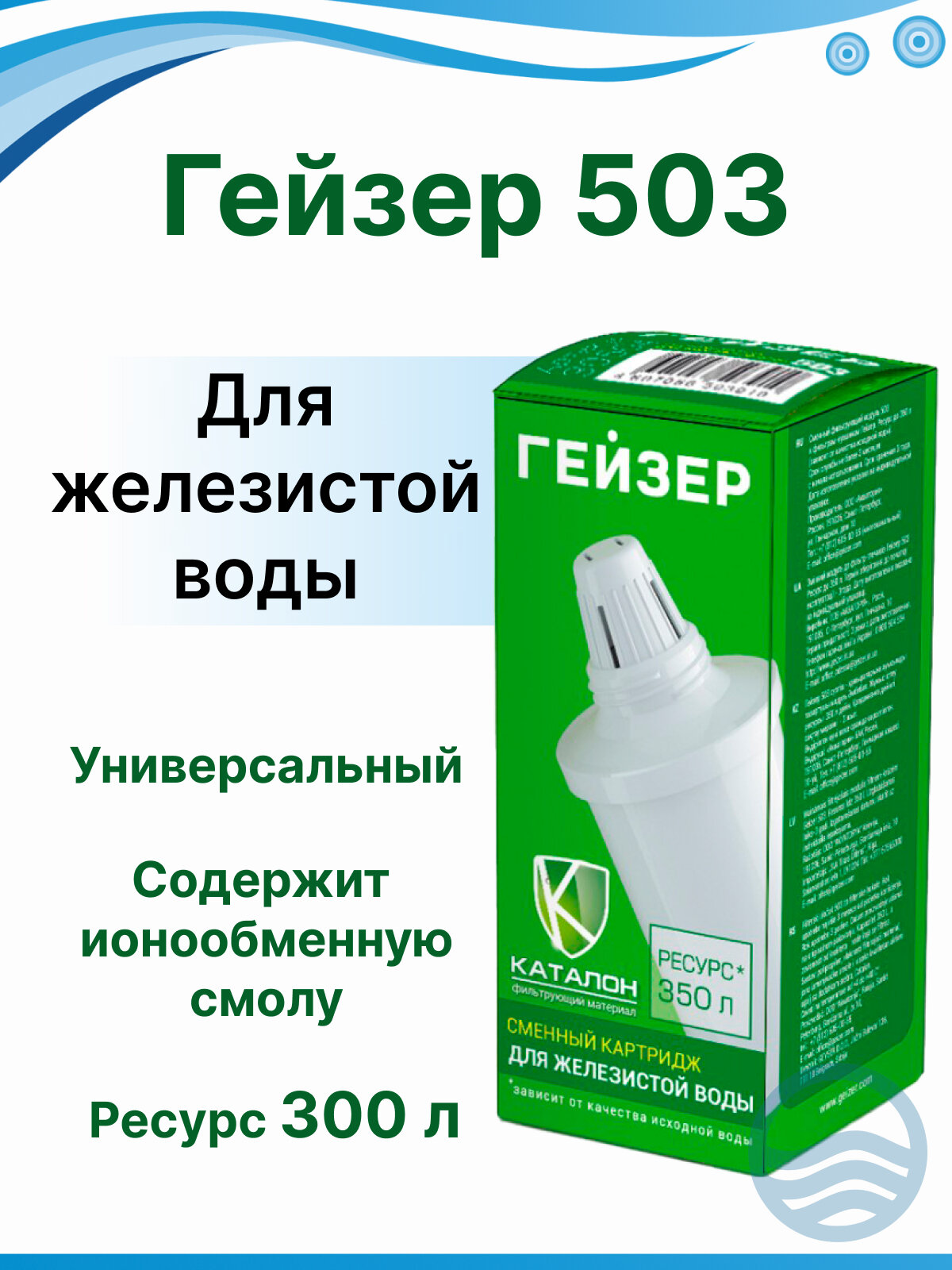 Сменный картридж 503 для фильтра-кувшина Гейзер, для железистой воды, 1 шт.