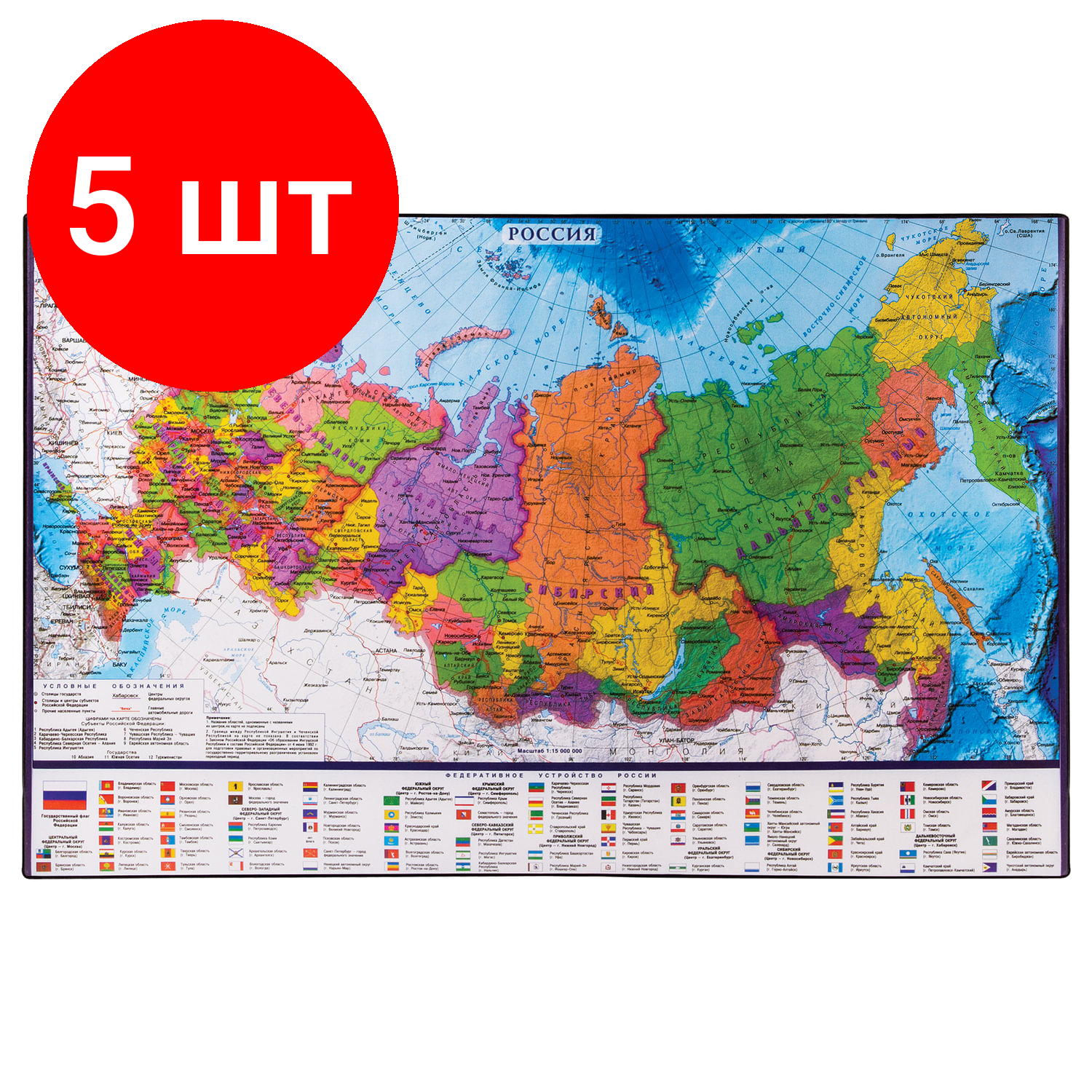 Коврик-подкладка настольный для письма (590х380 мм), комплект 5 шт., с картой России, BRAUBERG, 236776