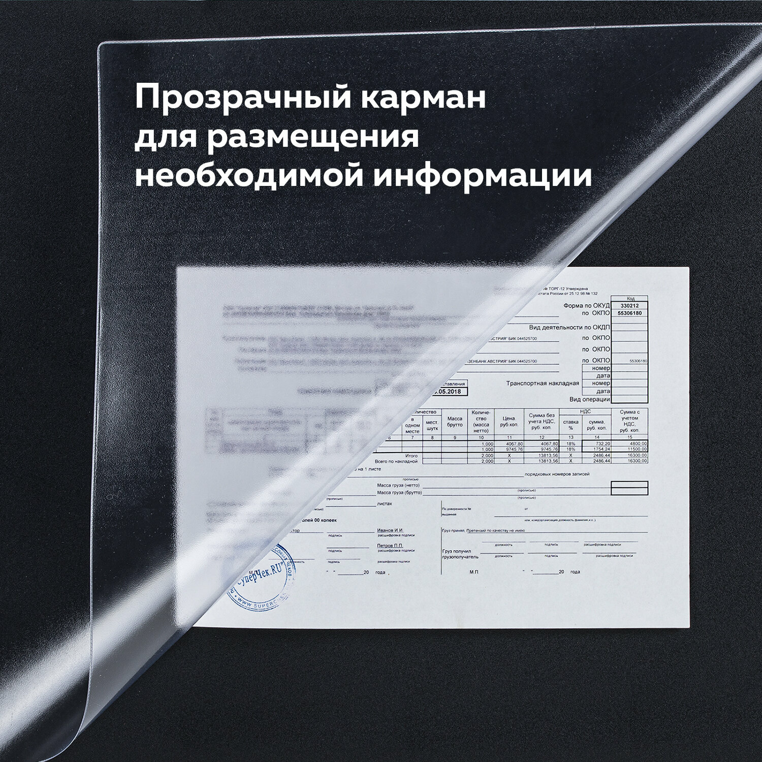 Коврик-подкладка А2 с прозрачным карманом, черный