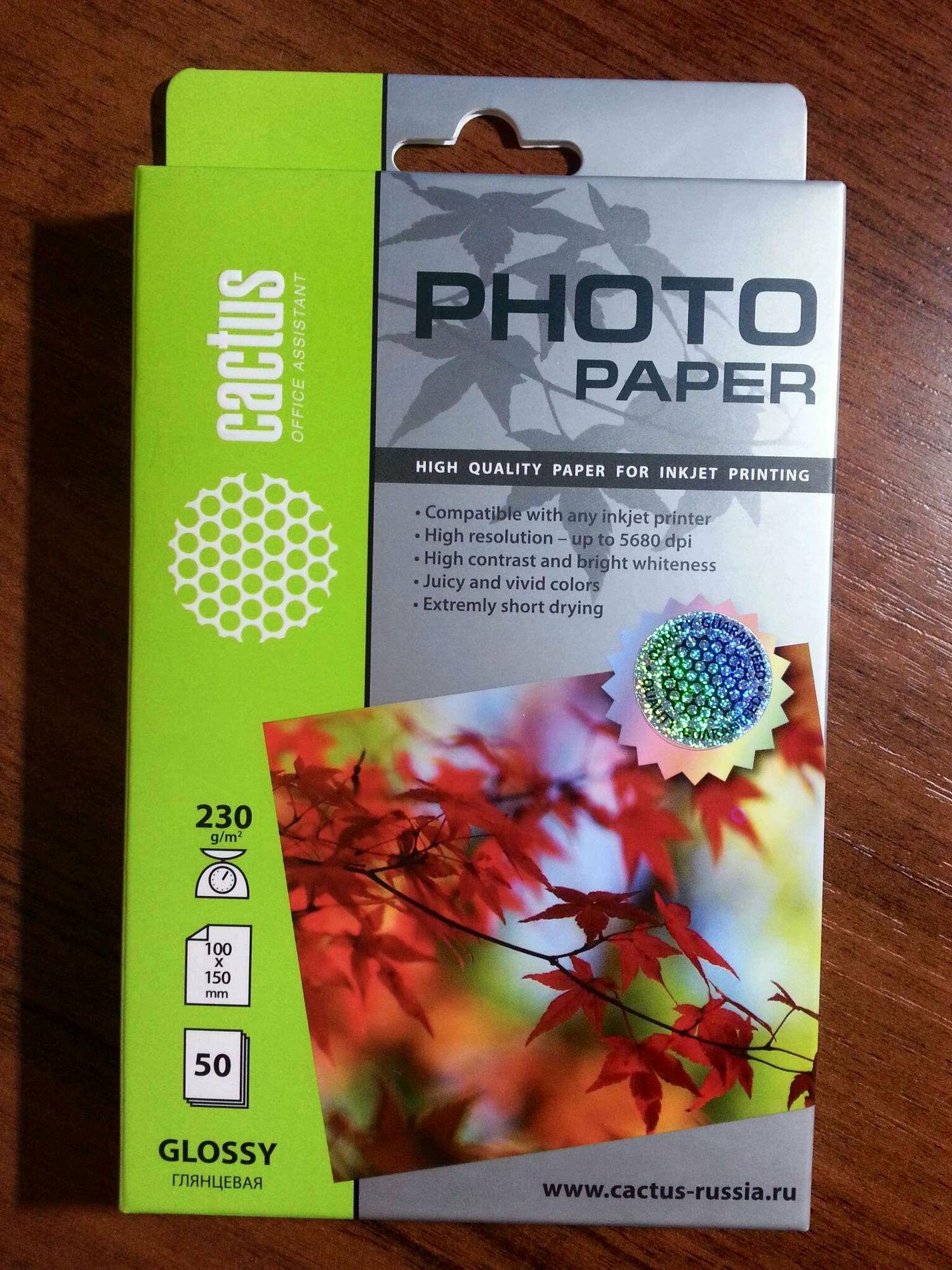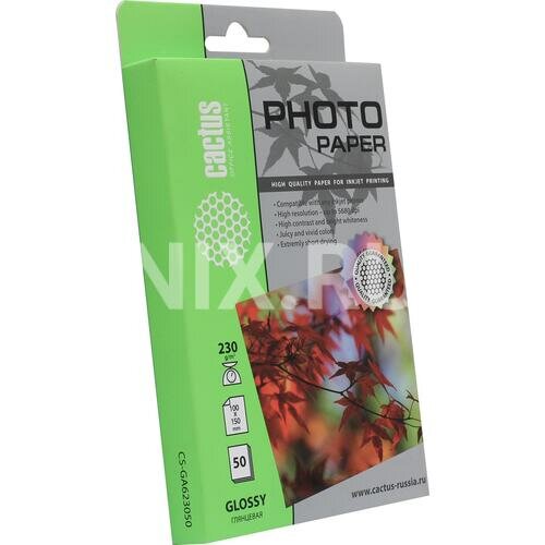 Cactus GA623050 Фотобумага CS-GA623050 глянцевая, 10x15, 230 г м2, 50 листов