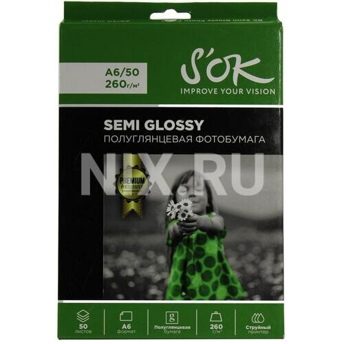 Фотобумага Premium S'ok полуглянцевая, формат А6, плотность 260г/м2, 50 листов Sa6260050sg .