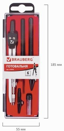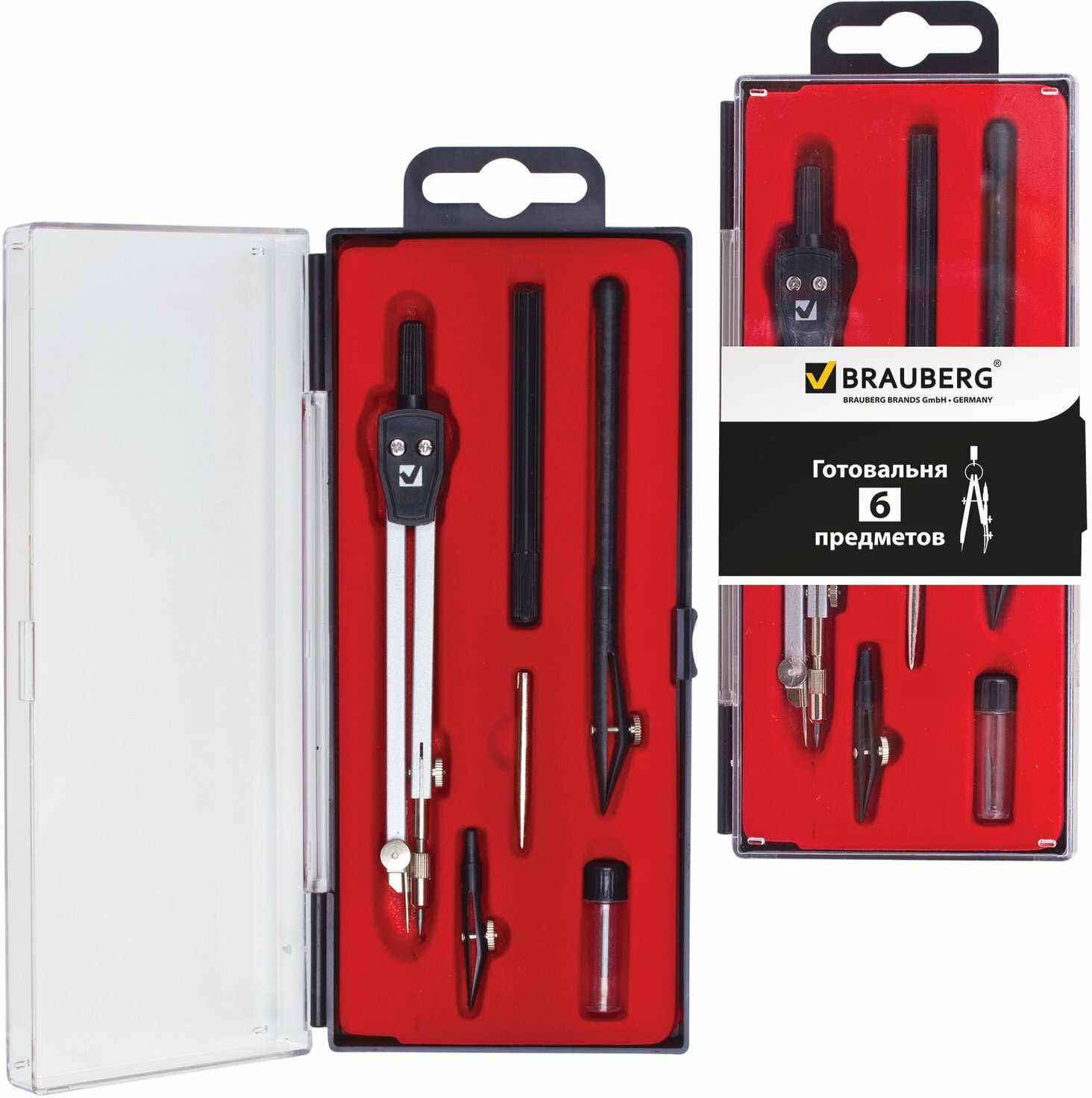 Готовальня BRAUBERG "Architect", 6 предметов: циркуль, рейсфедер + вставка + держатель, игольная вставка, грифель, 210342 (цена за 1 ед.товара)