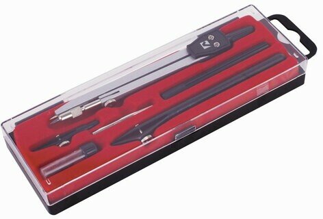 Готовальня (BRAUBERG) "Architect", 6 пр., циркуль, рейсфедер + вставка + держатель, игол. вставка, грифель 210342
