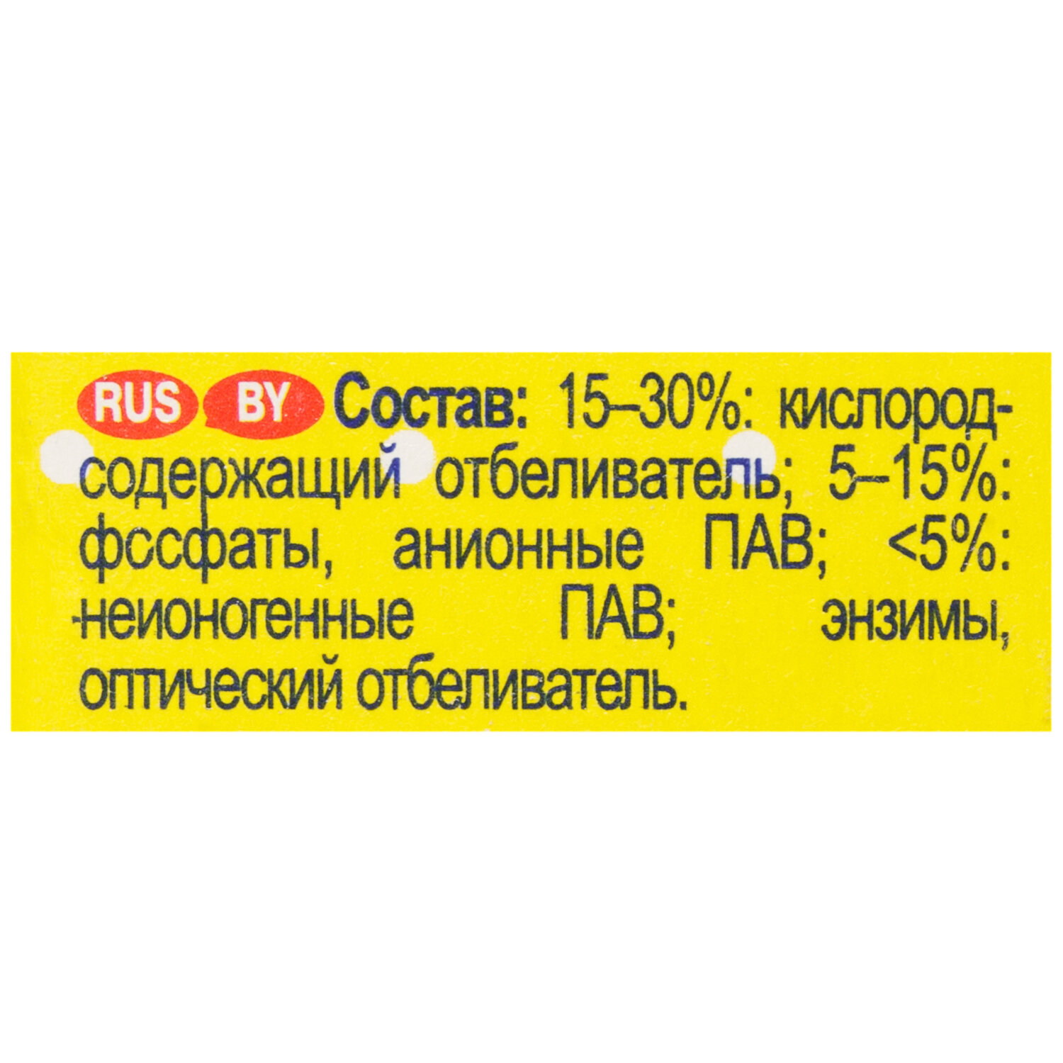 | Отзыв: | В целом хороший пятновыводитель, справляется с трудными пятнами: детское питание, трава, черника, масляные пятна |