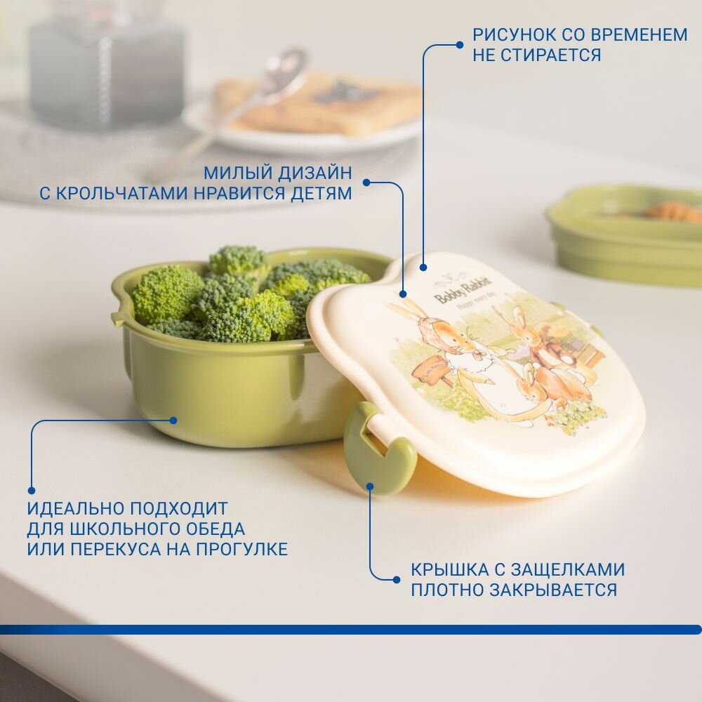 Ланч-бокс Зайчата с тарелкой и ложкой-вилкой 16,5х12см 829-143