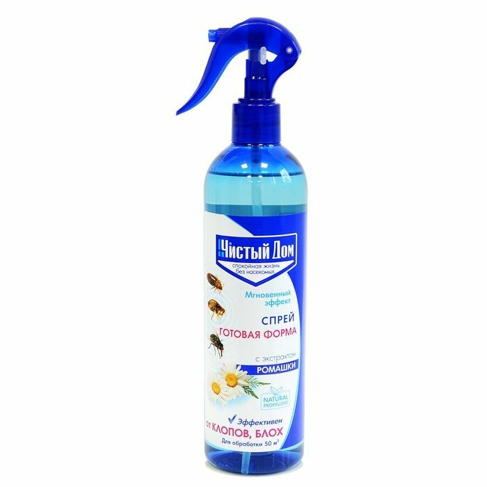 Чистый дом Спрей инсектицидный от насекомых с экстрактом ромашки от Клопов,Блох 400 мл
