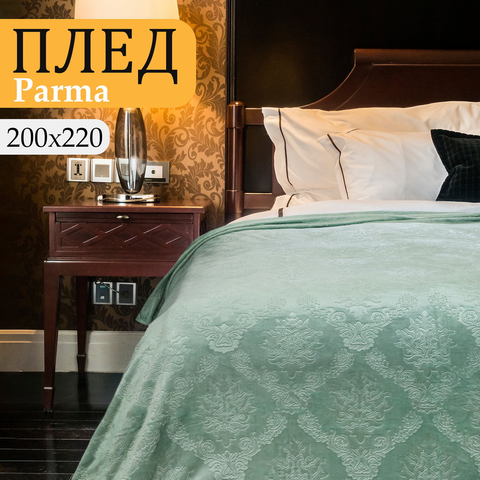 Плед двуспальный евро 200х220 зеленый, покрывало на кровать и диван Cleo Parma, пушистый с рисунком, велсофт