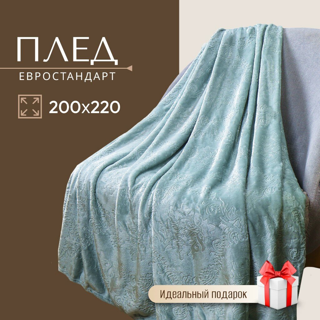 СохранитьПлед двуспальный евро 200х220 бирюзовый, покрывало на кровать и диван Cleo Parma, пушистый с рисунком, велсофт интересное: