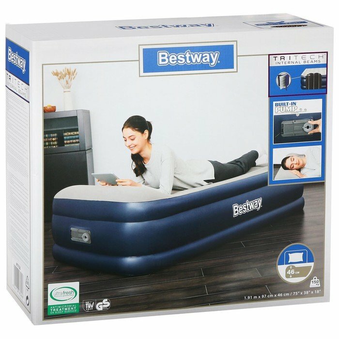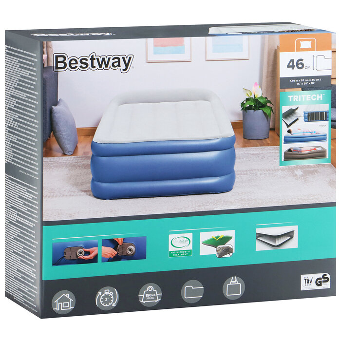 Кровать надувная Bestway Tritech Airbed Twin Built-in AC Pump 67628, 191х97х46 см, встроенный электронасос