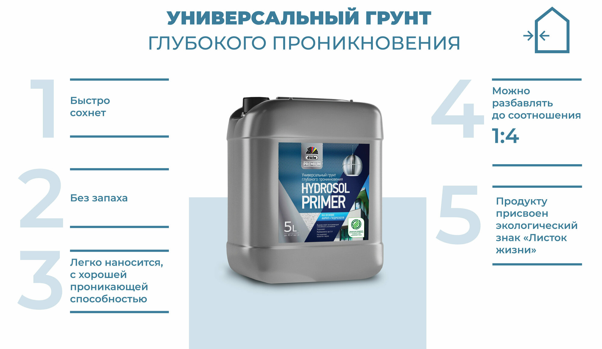 Грунт-Концентрат Акриловый Dufa Hydrosol Primer 5л (1:4) для Внутренних и Наружных Работ / Дюфа Гидросол Праймер. интересное: