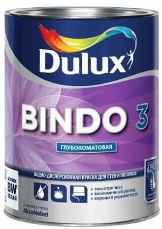 Dulux BINDO 3 / Дулюкс Биндо 3 ВД краска для стен и потолков матовая База ВW 1л